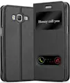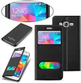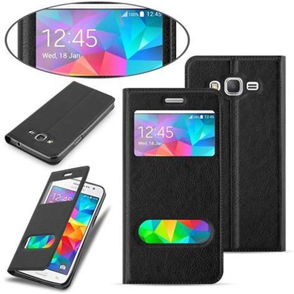Cadorabo Funda Libro para Samsung Galaxy GRAND PRIME en NEGRO COMETA - Cubierta Proteccion con Cierre Magnetico, Funcion de Suporte y 2 Ventanas- Etui Case Cover Carcasa