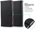 DISE?O: Elegante funda de cuero sintetico en estilo Luxury con tarjetero y funcion de Soporte. La tapa se puede abrir/doblar hasta 360? y, por lo tanto, no estorba al hablar por telefono o al escribir. Gracias al cuero sintetico seleccionado y sus colores lujosos la funda es perfecta para una impresion seria. La carcasa integrada de TPU silicona se adhiere firmemente en la tapa y le da a su telefono inteligente un ajuste perfecto. FUNCIoN: La funda tiene 2 compartimiento para tarjetas. Todas las opciones del telefono se pueden utilizar sin inconveniente; las teclas y los botones son de facil alcance y los conectores quedan libremente accesibles (camara, auriculares, etc.) El telefono se inserta en la carcasa de silicona pegada a la funda y se puede quitar facilmente cuando sea necesario. CALIDAD: Se han elegido los mejores criterios para confeccionarla de manera robusta, resistente y duradera. La funda para el movil esta completamente cosida alrededor y, por dentro, forrada con una suave piel sintetica. Durante el proceso de elaboracion se ha prestado atencion a todo: costuras limpias, cavidades limpias, esquinas y bordes limpios. Para la fabricacion se utilizaron selectos y robustos cuero de imitacion y plastico. PROTECCIoN: La funda ofrece una muy buena proteccion integral. Tanto la pantalla como la parte trasera estan bien protegidos en esta funda. La carcasa silicona ofrece una proteccion adicional para las esquinas y los bordes del telefono movil. Gracias a la cerradura magnetica, el telefono inteligente queda tambien protegido, por ejemplo, dentro de un bolso de mano. OTROS: A pesar de la buena proteccion, recomendamos una pelicula protectora para la pantalla. Esta proporciona proteccion adicional contra ara?azos en la pantalla y esta disponible en nuestra tienda. ?El telefono inteligente, el dinero y las tarjetas que se muestran NO estan incluidos!