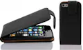 Cadorabo Funda para Apple iPhone 5C in NEGRO DE CAVIAR - Cubierta Proteccion Estilo Flip de Cuero Sintetico Liso - Etui Case Cover Carcasa