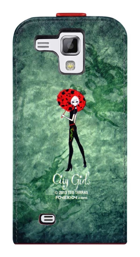 Funda vertical de Ideus para Samsung Galaxy Trend, con un diseño original de "City Girls" realizado en cuero, en cuyo interior se ajusta perfectamente el dispositivo, protegiéndolo de golpes y arañazos. Cuenta con un cierre de imán de baja densidad para una mayor seguridad.