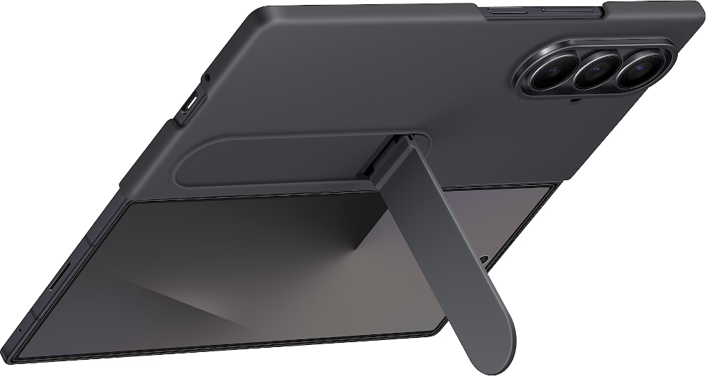 El soporte integrado de la Silicone Case para Galaxy Z Fold7 se ajusta a tus necesidades. Solo tienes que desplegarlo para acceder a la visualización a pantalla completa.