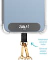 El colgante de Zanae es una práctico accesorio que le permitirá llevar su teléfono colgado de forma muy cómoda y segura. Su sistema de fijación se coloca dentro de la funda (incluido) y lo convierte en un sistema universal para todos los teléfonos del mercado que te permite llevarlo tanto de forma frontal como lateral.