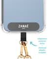 El colgante de Zanae es una práctico accesorio que le permitirá llevar su teléfono colgado de forma muy cómoda y segura. Su sistema de fijación se coloca dentro de la funda (incluido) y lo convierte en un sistema universal para todos los teléfonos del mercado que te permite llevarlo tanto de forma frontal como lateral.
