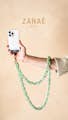 El colgante de Zanae es una práctico accesorio que le permitirá llevar su teléfono colgado de forma muy cómoda y segura. Su sistema de fijación se coloca dentro de la funda (incluido) y lo convierte en un sistema universal para todos los teléfonos del mercado que te permite llevarlo tanto de forma frontal como lateral.