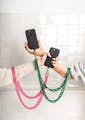 El colgante de Zanae es una práctico accesorio que le permitirá llevar su teléfono colgado de forma muy cómoda y segura. Su sistema de fijación se coloca dentro de la funda (incluido) y lo convierte en un sistema universal para todos los teléfonos del mercado que te permite llevarlo tanto de forma frontal como lateral.