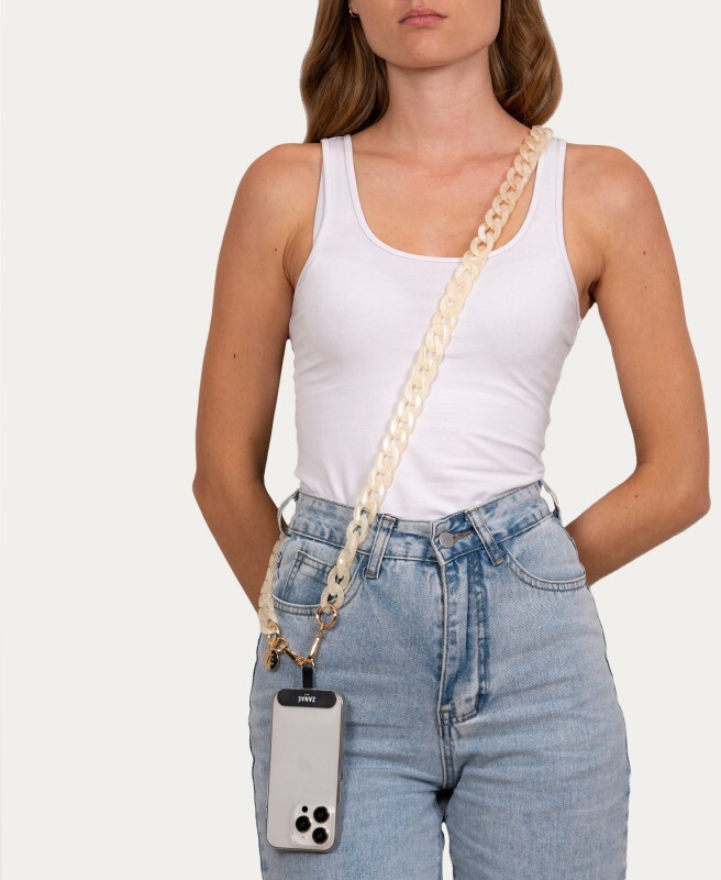 El colgante de Zanae es una práctico accesorio que le permitirá llevar su teléfono colgado de forma muy cómoda y segura. Su sistema de fijación se coloca dentro de la funda (incluido) y lo convierte en un sistema universal para todos los teléfonos del mercado que te permite llevarlo tanto de forma frontal como lateral.