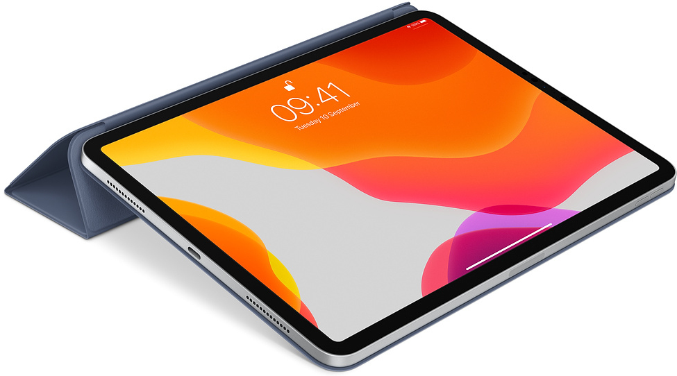 Con la funda Smart Folio, tu iPad Pro de 11 pulgadas está protegido tanto por delante como por detrás. Además, activa el iPad cuando la abres y lo pone en reposo cuando la cierras.
