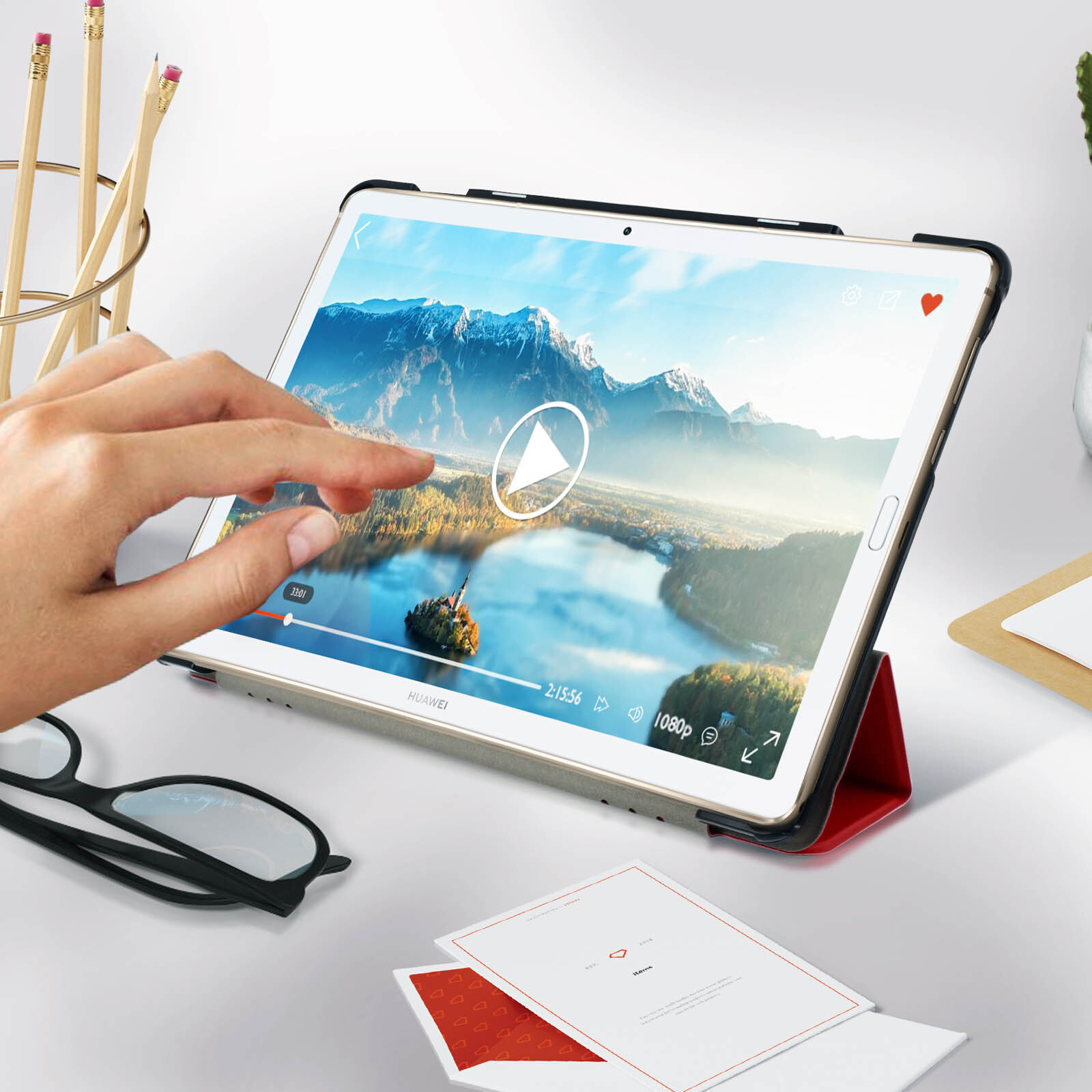 Avizar Funda Huawei MediaPad M6 10.8 - F. Soporte Vídeo/Teclado - Rojo