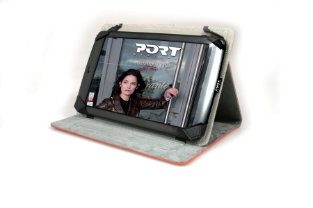 La funda tipo libro con stand, Detroit IV universal para tablets de 7"/17,78cm, realizada en semipiel e interior de suave microfibra. Resistente y ligera.
