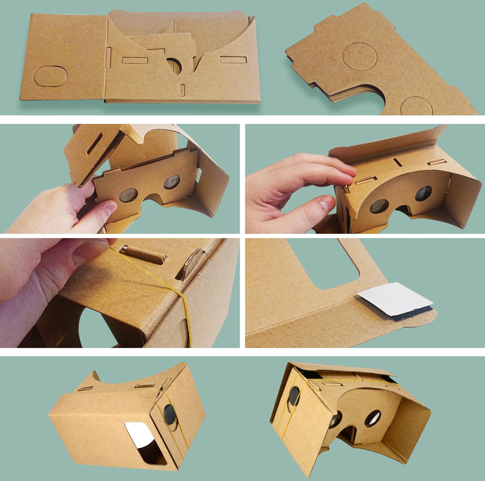 Gafas RV para descubrir el mundo de la realidad virtual con tu smartphone. Fabricadas en cartón reciclable, ligeras y ultracompactas. Un par de lentes para una vista panorámica. Fáciles de montar. Plegables y ultracompactas para facilitar su transporte. • Características y Puntos fuertes: En casa, estas gafas de realidad virtual diseñadas con Cardboard serán todo un éxito. Amplia compatibilidad con la mayoría de los smartphones del mercado. Rápido y divertido de montar, las instrucciones te muestran paso a paso cómo hacerlo. Vista panorámica para descubrir un mundo virtual como si estuvieras allí