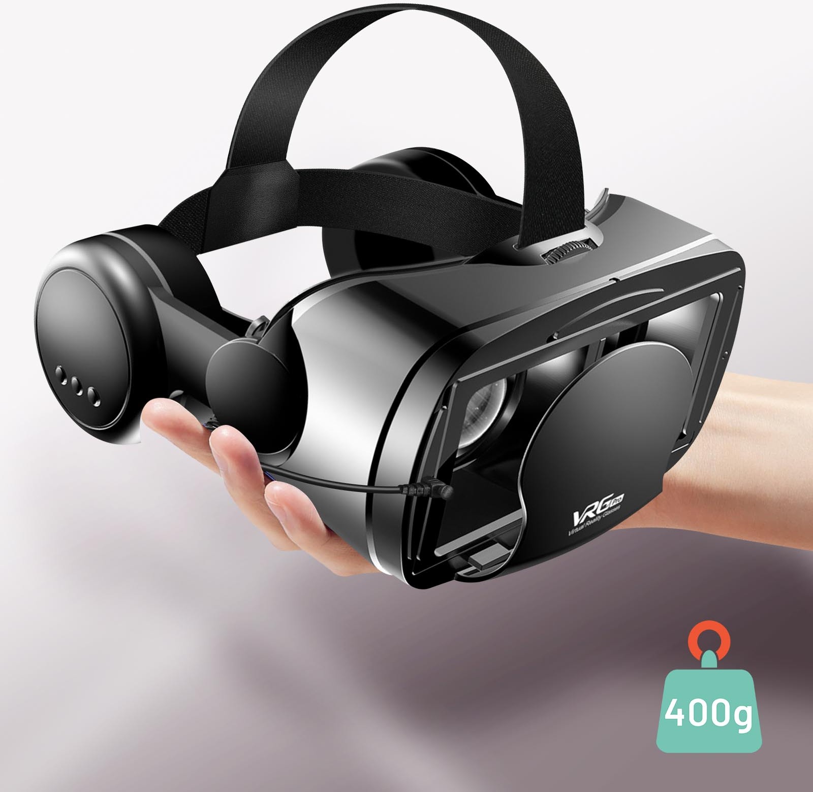 Gafas RV para una experiencia de inmersión 3D. Lentes anti luz azul. Ángulo de visión 120°. Cable jack de 3,5 mm integrado para un sonido de calidad. Compatible con smartphones de entre 5"" y 7"" y con Youtube VR y Netflix VR. Correas ajustables. Peso 400g. • Características y Puntos fuertes: Vive la experiencia de la inmersión en 3D con estas gafas de realidad virtual. Totalmente compatible con smartphones de entre 5"" y 7"" (iOS / Android). Lentes con protección contra la luz azul, que protegen tus ojos de la fatiga. Inmersión en 3D con un fiel rendimiento y una vista panorámica de hasta 120°