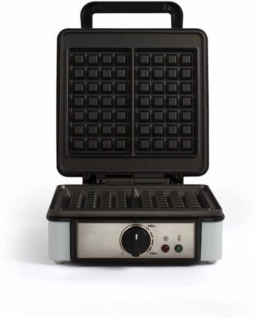 Gofrera con termostato Termostato regulable Superficie de cocción: 14,5 x 17,5 cm Recubrimiento antiadherente para facilitar la limpieza Indicadores de funcionamiento y listo para cocinar Mango resistente al calor Almacenamiento del cable