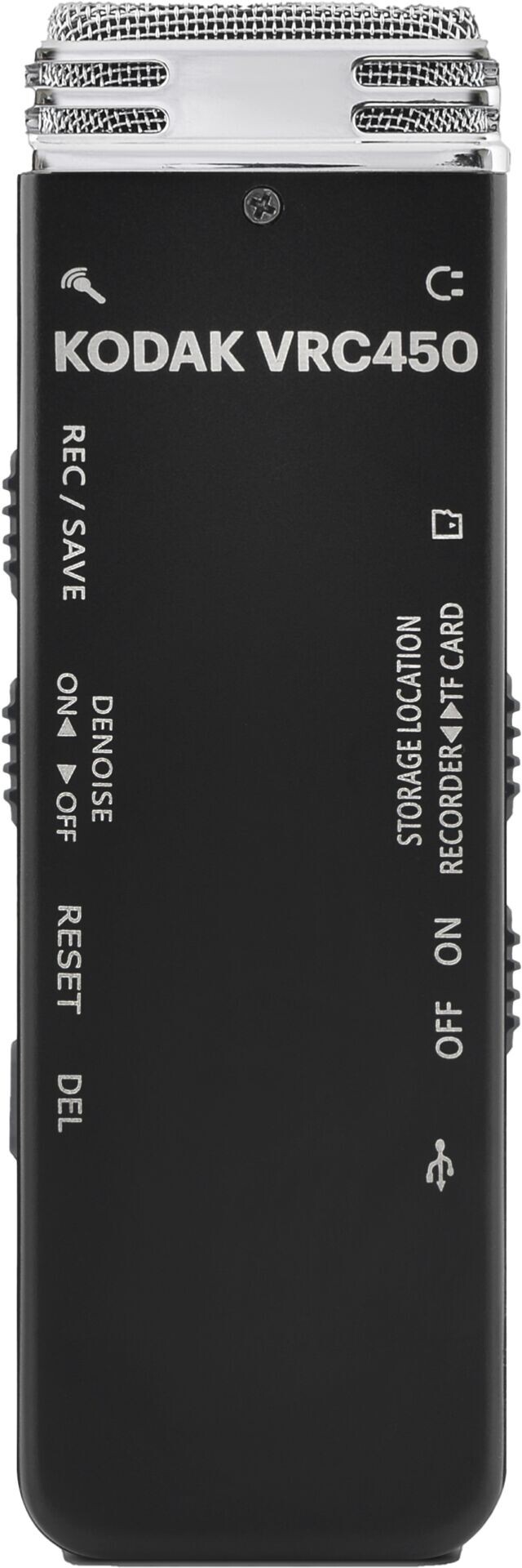 Con su diseño compacto y su funcionamiento intuitivo, la grabadora de voz digital KODAK VRC450 es ideal para realizar grabaciones de audio instantáneas en formatos WAV/MP3 dondequiera que esté. Su batería de litio integrada proporciona hasta 34 horas de funcionamiento y su memoria interna de 8GB ofrece 581 horas de grabación para un uso ininterrumpido. Incluso puede obtener hasta 144 horas de tiempo de grabación adicional si inserta una tarjeta micro SD de hasta 32GB (no incluida) en la ranura dedicada. Ya sea para grabar las ideas que se le ocurren o para evitar la tediosa toma de notas en situaciones en las que es mejor no dejarse nada en el tintero, se adapta a sus necesidades y cuenta con útiles funciones como la grabación activada por voz o la reducción del ruido parásito. Su tecnología Plug and Play no sólo facilita la transferencia de las grabaciones a un ordenador, sino también la descarga de música para poder utilizarla como reproductor de MP3. Por último, incluso es posible conectarle un micrófono externo o unos auriculares (incluidos) gracias a las dos tomas de entrada y salida estéreo de 3,5mm.