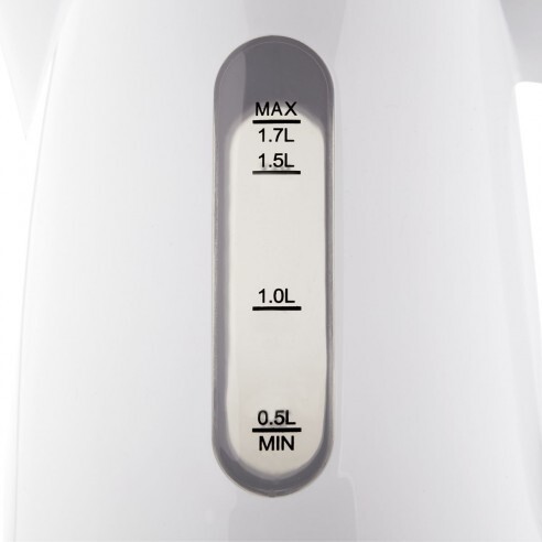 Potencia: 2200 W .Capacidad 1,7 litros. .Indicador de nivel de agua visible a ambos lados. .Interruptor on/off con piloto luminoso. .Tres sistemas de seguridad: Desconexion automatica al hervir. Desconexion automatica en caso de falta de agua. Desconexion automatica al levantar la jarra. .Resistencia oculta .Filtro antical extraible .Sistema de apertura facil de la tapa .Sin cable: base con giro 360? .Recogecables