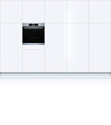 Bosch HBG673BS1F, Serie 8. Tamaño del horno: Medio, Tipo de horno: Horno eléctrico, Total capacidad interior, horno (s): 71 L. Color del producto: Acero inoxidable, Tipo de control: Giratorio, Control de posición: Parte superior delantera. Tipo de temporizador: Digital. Clase de eficiencia de energía: A+, Consumo de energía (convencional): 0,87 kWh, Consumo de energía (convección forzada): 0,69 kWh. Tipo de lámpara: Halógeno