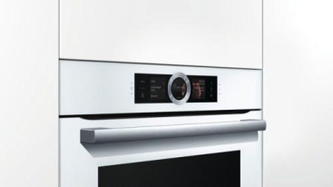 Bosch HSG636BW1, Serie 8. Tamaño del horno: Medio, Tipo de horno: Horno eléctrico, Total capacidad interior, horno (s): 71 L. Color del producto: Blanco, Tipo de control: Tocar, Control de posición: Parte superior delantera. Clase de eficiencia de energía: A+, Consumo de energía (convencional): 0,87 kWh, Consumo de energía (convección forzada): 0,69 kWh. Ancho: 595 mm, Profundidad: 548 mm, Altura: 595 mm. Tipos de recipientes de cocción al vapor incluidos: Non-perforated (solid) steam cooking container, Bandeja de horno perforada para cocción al vapor