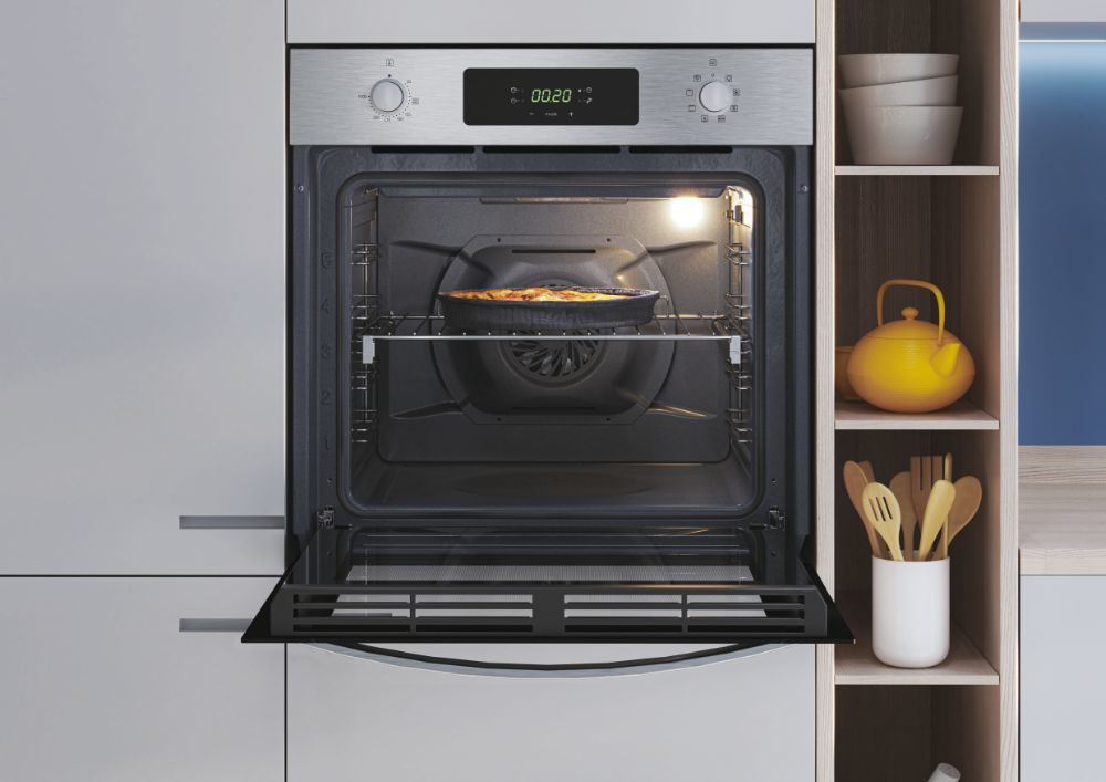 Candy Idea FIDC X625 L. Tamaño del horno: Medio, Tipo de horno: Horno eléctrico, Total capacidad interior, horno (s): 70 L. Tipo de instalación: Integrado, Color del producto: Acero inoxidable, Tipo de control: Giratorio. Tipo de reloj: Electrónico, Tipo de temporizador: Digital, Aplicaciones de control compatibles: hOn. Clase de eficiencia de energía: A+, Consumo de energía (convencional): 0,98 kWh, Consumo de energía (convección forzada): 0,68 kWh. Ancho de compartimiento de instalación: 56 cm, Profundidad del compartimiento de instalación: 56 cm, Altura del compartimiento de instalación: 58,5 cm
