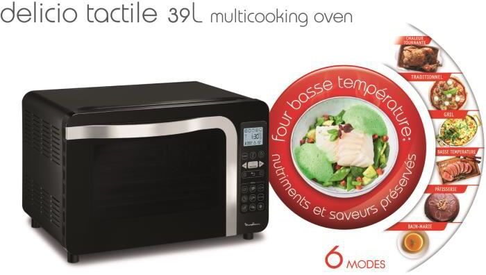Delicio Táctil es el horno que cubre todas tus necesidades de horneado y asado. Su gran capacidad de 39 L, sus 6 modos de cocción (tradicional, convección, grill turbo, pastelería, baño maría, modo baja temperatura), su intuitiva interfaz táctil, sus nueve modos de cocción automáticos cubrirán todas tus necesidades diarias. Un horno de tacto potente, resistente y práctico.