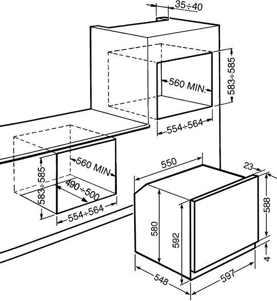 Smeg SF700PO. Tamaño del horno: Medio, Tipo de horno: Horno eléctrico, Total capacidad interior, horno (s): 70 L. Tipo de instalación: Integrado, Color del producto: Crema de color, Tipo de control: Giratorio. Tipo de reloj: Mecánico, Tipo de temporizador: Mecánico. Clase de eficiencia de energía: A, Consumo de energía (convencional): 1,15 kWh, Consumo de energía (convección forzada): 0,89 kWh. Ancho de compartimiento de instalación: 56,4 cm, Profundidad del compartimiento de instalación: 56 cm, Ancho: 597 mm