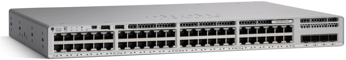 Cisco Catalyst 9200L. Tipo de interruptor: Gestionado, Capa del interruptor: L3. Puertos tipo básico de conmutación RJ-45 Ethernet: 10G Ethernet (100/1000/10000), Cantidad de puertos básicos de conmutación RJ-45 Ethernet: 48. Bidireccional completo (Full duplex). Tabla de direcciones MAC: 16000 entradas, Capacidad de conmutación: 176 Gbit/s. Estándares de red: IEEE 802.1D,IEEE 802.1Q,IEEE 802.1p,IEEE 802.1s,IEEE 802.1w,IEEE 802.1x,IEEE 802.3,IEEE.... Conector eléctrico: Conector de alimentación AC-in