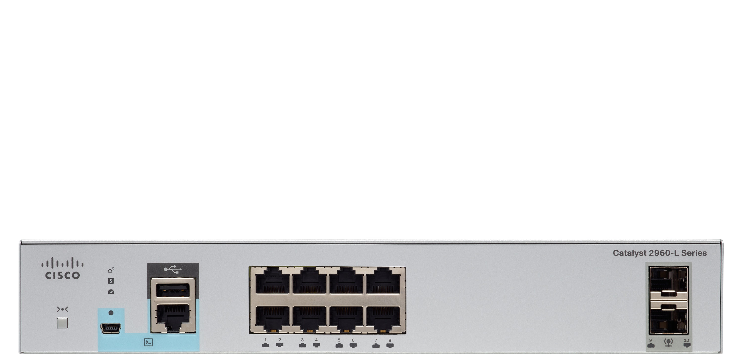 Cisco WS-C2960L-8TS-LL. Tipo de interruptor: Gestionado, Capa del interruptor: L2. Puertos tipo básico de conmutación RJ-45 Ethernet: Gigabit Ethernet (10/100/1000), Cantidad de puertos básicos de conmutación RJ-45 Ethernet: 8, Número de módulos SFP instalados: 2, Puerto de consola: RJ-45. Bidireccional completo (Full duplex). Tabla de direcciones MAC: 8000 entradas, Capacidad de conmutación: 20 Gbit/s. Estándares de red: IEEE 802.1D,IEEE 802.1ab,IEEE 802.1af,IEEE 802.1p,IEEE 802.1s,IEEE 802.1w,IEEE 802.1x,IEEE.... Montaje en rack, Factor de forma: 1U