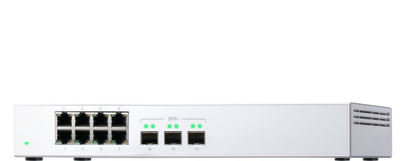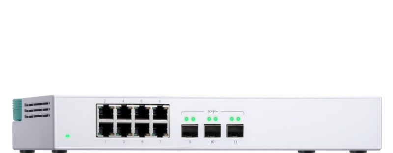 El QSW-308S es un switch no gestionado de 3 puertos 10 G SFP+ y 8 puertos Gigabit, que le permite integrarse al instante en un entorno híbrido de red de alta velocidad a un precio económico. Con su tamaño de escritorio y funcionamiento silencioso, el QSW-308S se integra perfectamente en hogares y oficinas a la vez que ofrece un gran rendimiento, baja latencia y una extraordinaria funcionalidad.\n\nImplementación flexible con varios puertos Gigabit y fibra 10 G SFP+\nEl QSW-308S proporciona tres puertos 10 GbE SFP+ y ocho puertos Gigabit para conectar varios dispositivos y habilitar una red híbrida de alta velocidad en hogares y oficinas. Con las interfaces SFP+, se pueden utilizar cables de cobre de conexión directa (DAC) para conectar directamente a dispositivos SFP+. También puede utilizar módulos de transceptor de cobre 10 G-SFP-T para conectar dispositivos 10GBASE-T/NBASE-T™ a través del cableado RJ45 de Categoría 6, 5 o 5e. La capacidad de conmutación de QSW-308S es de 76 Gbps, lo que garantiza el máximo potencial de cada puerto.\n\nMejore su productividad con un NAS de QNAP habilitado para 10 GbE\nMuchas series NAS de QNAP están diseñadas con una preparación de 10 GbE y se pueden actualizar inmediatamente al adquirir e instalar un adaptador de red de 10 GbE. NAS de QNAP también se encuentra disponible con 10 GbE SFP+ y 10GBASE-T como estándar para admitir completamente las redes de alta velocidad de 10 GbE, lo que es una ventaja para aplicaciones que requieren IOPS como virtualización, bases de datos, edición de vídeo de alta resolución, y flujos de trabajo compartidos.\n\nPuede crear fácilmente una red de alta velocidad con adaptadores de red QNAP\nQNAP ofrece una amplia gama de dispositivos de red para que los usuarios domésticos y de empresas puedan actualizar su infraestructura de red para satisfacer los cada vez mayores requisitos de ancho de banda. El adaptador de red Thunderbolt 3 a 10GbE de QNAP proporciona un método rápido y económico para que los ordenadores portátiles (y otros dispositivos con limitaciones de actualización) aprovechen la conectividad de alta velocidad de 10 GbE.\n\nFuncionamiento eficaz y silencioso\nEl QSW-308S cuenta con un diseño sin ventilador para un funcionamiento silencioso. La construcción ventilada de diseño único ayuda en la refrigeración a la vez que mantiene un alto rendimiento.\n\nEl tamaño del escritorio facilita su uso en hogares y oficinas.\nCon un diseño compacto y moderno, QSW-308S se adapta perfectamente a otros dispositivos en hogares y oficinas digitales modernas. El fino diseño de superficie pulida o texturizada blanca, QSW-308S ayuda a los usuarios a identificar cada puerto de forma sencilla. El conector de alimentación de CC flexible también ayuda a implementar el QSW-308S a nivel global.