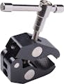 Una abrazadera resistente con un rango de apertura máximo de 5 cm. Las terminaciones recauchutadas de la abrazadera aseguran una fijación estable de los tubos o los trípodes. A un lado, hay unas roscas hembras de 1/4"" y 3/8"" para que se pueda conectar cada trípode de cámara, soporte de luces o cualquier otro accesorio con rosca de trípode..CARACTERÍSTICAS.abrazadera de tubo forrada de caucho.rango de apertura: 5 cm.1/4"" y 3/8"" rosca hembra.Asa en T para un fácil ajuste de la apertura de la abrazadera.CONTIENE.1x super abrazadera universal con conexión de rosca.ESPECIFICACIONES TÉCNICAS.Longitud total (mm) .85.Ancho total (mm) .50.Altura total (mm) .20.Peso neto (g) .120.Color .negro.Material .Metal