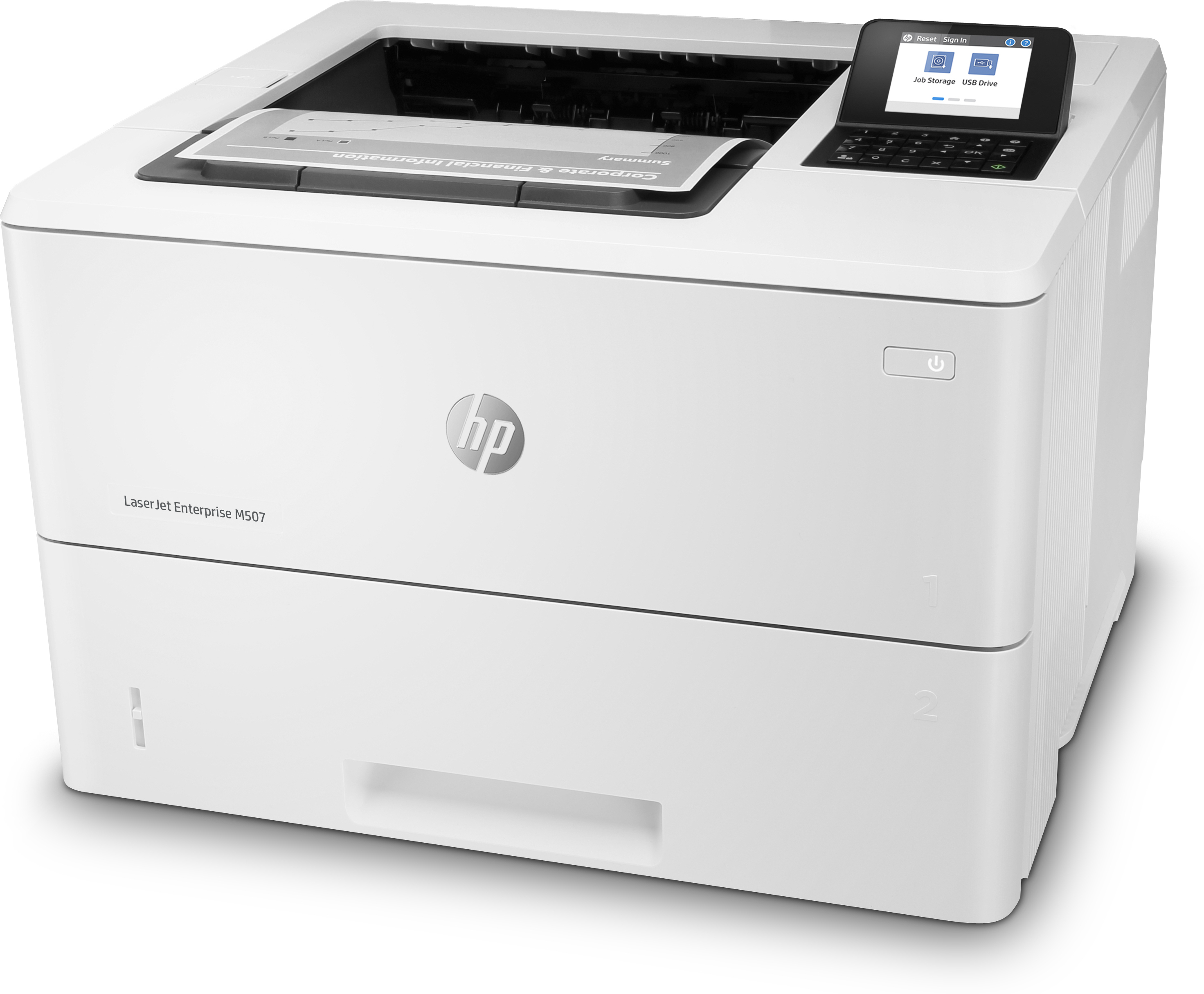 HP LaserJet Enterprise M507dn. Tecnología de impresión: Laser, Número de cartuchos de impresión: 1, Ciclo de trabajo (máximo): 150000 páginas por mes, Resolución máxima: 1200 x 1200 DPI. Tamaño máximo de papel ISO A-series: A4. Velocidad de impresión (negro, calidad normal, A4/US Carta): 43 ppm. Capacidad de entrada estándar: 650 hojas, Capacidad de salida estándar: 250 hojas. Impresión dúplex. Pantalla: LCD. Listo para redes. Color del producto: Blanco