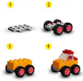 Los niños usan su creatividad con este juego inspirador que incluye un juego de coloridas ruedas, neumáticos, ladrillos y piezas ®.