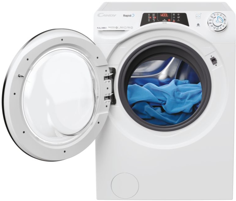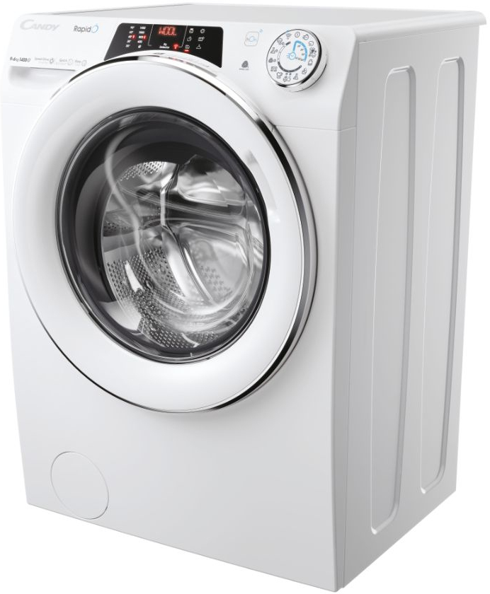 Candy RapidÓ ROW4964DWMCT/1-S. Tipo de carga: Carga frontal, Tipo de instalación: Independiente, Color del producto: Blanco. Capacidad de nominal (lavado y secado): 6 kg, Máxima velocidad de centrifugado: 1400 RPM, Clase de secado por giro: B. Clase de eficiencia energética (lavado): A, Clase de eficiencia energética (lavado y secado): D, consumo de agua de lavado: 49 L. Tecnologías Candy (cuidado de la ropa): KG Detector, Mix Power System Plus. Profundidad: 580 mm, Ancho: 600 mm, Altura: 850 mm