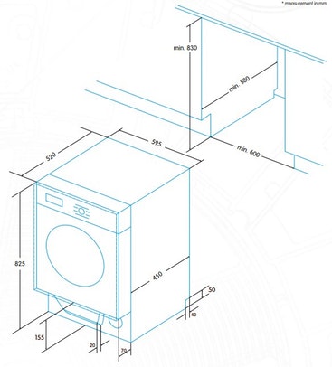 Lavadora-secadora de carga frontal de integración;\nCapacidad de lavado de 1 a 8 kilos. Capacidad de secado de 1 a 6 kilos;\nVelocidad máxima de centrifugado 1.400 r.p.m\nClasificación energética A;\nConsumo variable en función de la carga;\nBloqueo seguridad niños y bloqueo de puerta durante el funcionamiento;\n16 programas de lavado;\nSelector de temperatura independiente;\nPantalla de tecnología Led con información de: programación diferida hasta 24 horas, duración y tiempo restante de programa;\nProgramas especiales: lava-seca 60min, mixto, ropa bebé, vaqueros, sport y programa personalizado;\nOpciones: programación diferida hasta 24 horas, selector de temperatura y selector de grado de secado;\nDimensiones (altura x anchura x profundidad): 825 x 595 x 540 mm