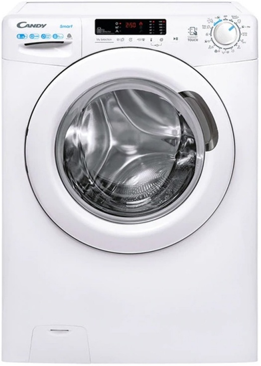 Lavasecadora de Libre Instalación en color blanco; eficiencia energética E; conectivad vía NFC; capacidad de carga de 8 Kg, capacidad de secado de 5 Kg y máxima velocidad de centrifugado de 1400rpm..2 productos en 1: lavadora 8 kg y secadora 5kg, 1400 rpm con 15 ciclos de lavado incluidos,Función vapor Easy Iron: reduce las arrugas, elimina las manchas difíciles y limpia fácilmente hasta los tejidos delicados,Lavasecadora con múltiples prestaciones: conectividad NFC, gestión de la temperatura de secado y certificado Woolmark Apparel Care, para el cuidado de las prendas de lana,Inicio diferido hasta 24 h: retrasa la hora de inicio de tu lavadora secadora hasta 24 h, según tus necesidades,Medidas (alto x ancho x profundo): 85 x 60 x 53 cmEspecificaciones: .Color: Blanco . | Marca: Candy . | Tensión: 230 Voltios . | Lugar de acceso: Front Load . | Velocidad máxima de rotación: 1400 RPM . | Consumo de energía (lavado y secado): 5,44 kWh . | Tipo de construcción: libre instalación . | Nivel de ruido de secado: 62 dB . | Clase de eficacia de lavado: A . | Consumo de agua lavado y secado: 115 litros . | Clase de eficiencia energética: E . | Consumo de agua en lavado: 44 . | Prestaciones principales: Mix Power System . | Tensión (V): 220-240 . | App IOT: simply-Fi . | Tecnología: Smart Touch . | Clasificación energética: A . | Tipo de indicador: Display Digit Touch . | Sistema de seguridad: Bloqueo de seguridad . | Código de producto: 31010538 . | Expandir ficha: Contraer ficha