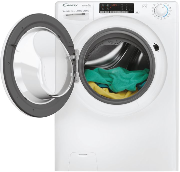 Candy Smart Pro Inverter CO 4104TWM/1-S. Tipo de carga: Carga frontal. Capacidad nominal: 10 kg, Clase de secado por giro: B, Nivel de ruido (spin): 76 dB, Máxima velocidad de centrifugado: 1400 RPM. Color del producto: Blanco. Ancho: 60 mm, Profundidad: 58 mm, Altura: 850 mm. Clase de eficiencia de energía: A