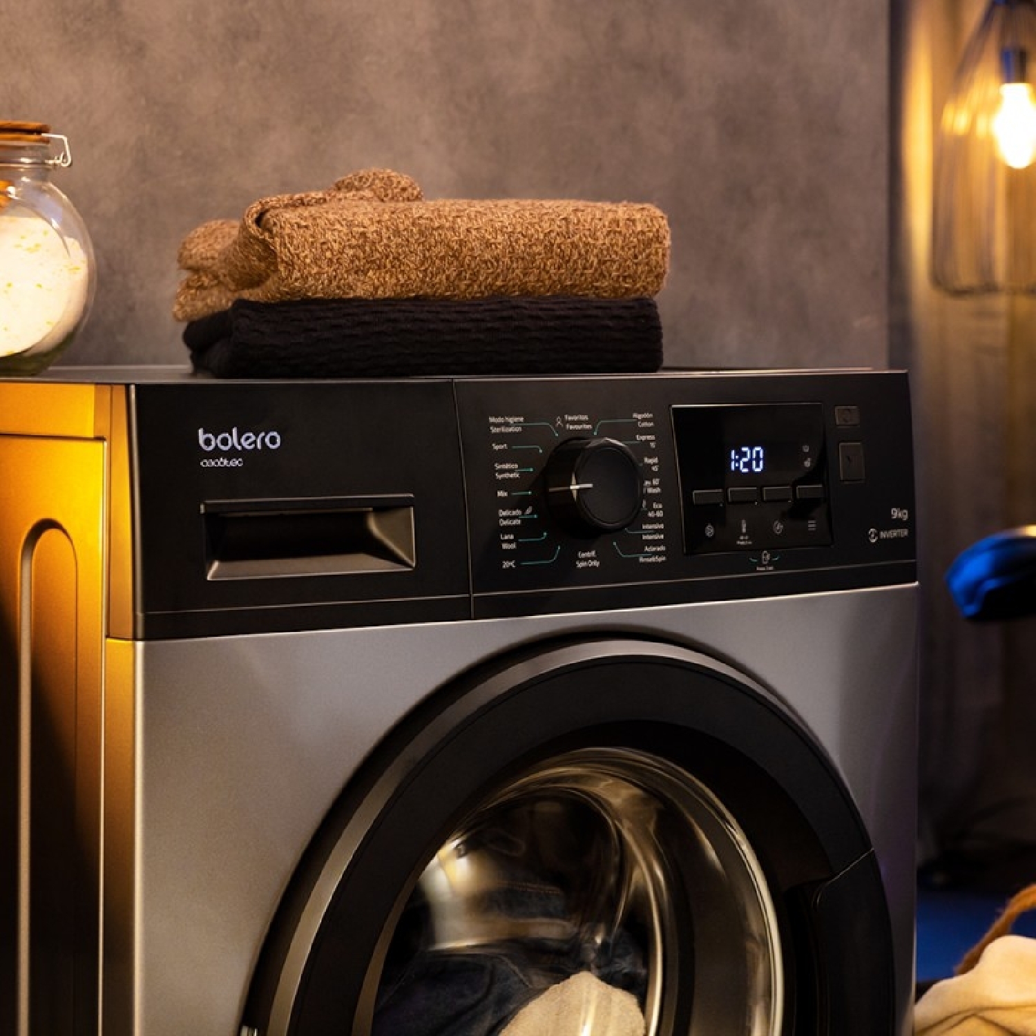 Capacidad de carga de 9 kg..Revoluciones programables: max 1400 rpm..Motor Inverter Plus: ahorro de energía, con disminución de vibraciones y ruido..16 programas para diferentes tejidos y funciones: Algodón, InstantWash 15’ y 45’, Lavado 60’, ECO 40-60, Intensivo, Aclarado, Centrifugado, 20ºC, Lana, Delicado, Mixto, Sintético, Sport, Sterilization y MyFav, con temperaturas regulables. .Panel de control con display LED. Da información como el tiempo restante de lavado y las opciones elegidas para el programa..DelayStart: programa la lavadora entre 0 y 24 h antes, con el inicio en diferido..Programa MyFav: memoriza tus programas y configuración más usados..Sterilization: programa que adapta la temperatura del agua a 60ºC para esterilizar tu ropa..Función Prelavado: lavado adicional antes del principal que elimina el polvo de la superficie de la ropa. .Función Enjuague extra: la ropa se enjuaga una vez más al finalizar el programa seleccionado..KidLock: bloqueo de seguridad para niños..DiamondCare: cuida la ropa y desincrusta la suciedad. Especial textura en forma de diamante del tambor que facilita, y mejora la limpieza y el deslizamiento de las prendas, lavándolas con sumo cuidado y delicadeza..Bloqueo de puertas..Función Silence: silencia la lavadora, tanto el final de ciclo como sus sonidos.