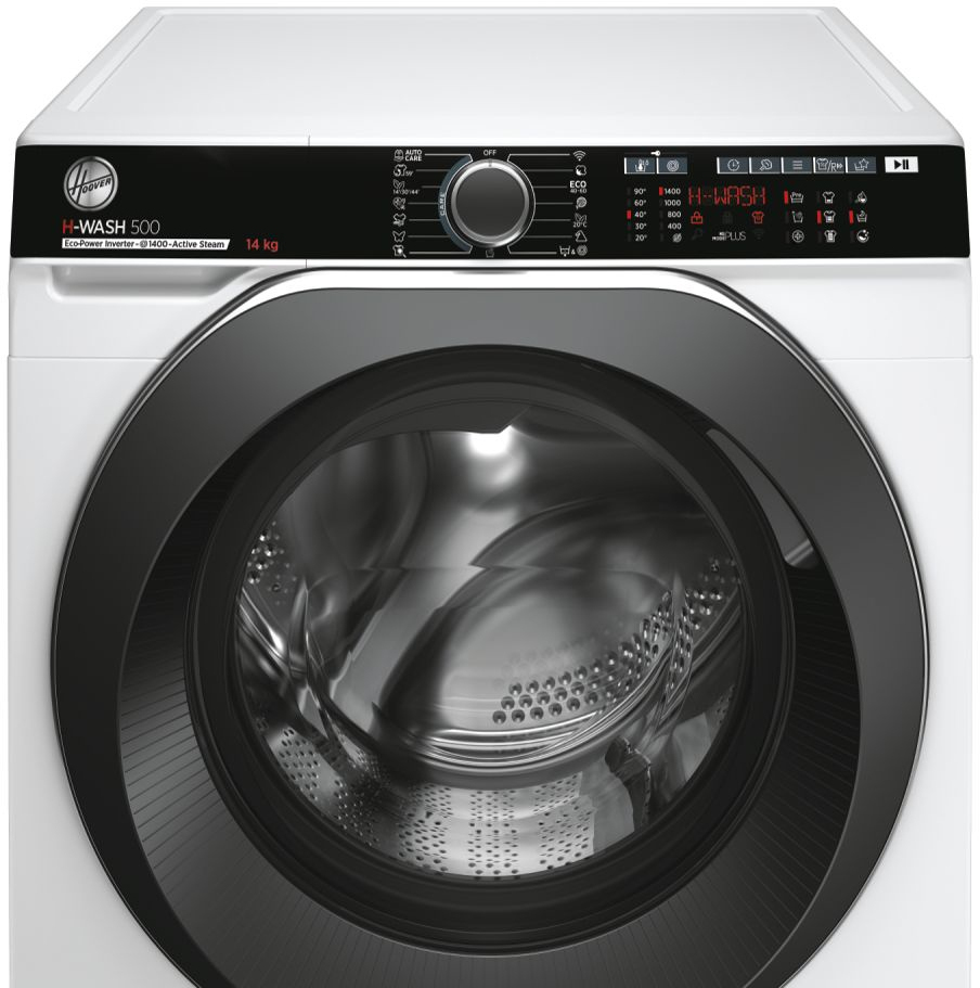 Hoover H-WASH 500 HWP 414AMBC/1-S. Tipo de carga: Carga frontal. Capacidad nominal: 14 kg, Clase de secado por giro: B, Nivel de ruido (spin): 80 dB, Nivel de ruido (lavado): 53 dB, Máxima velocidad de centrifugado: 1400 RPM. Consumo anual de energía, lavado: 159 kWh, Consumo anual de agua de lavado: 13700 L. Color del producto: Blanco. Ancho: 600 mm, Profundidad: 670 mm, Altura: 850 mm. Clase de eficiencia de energía: A