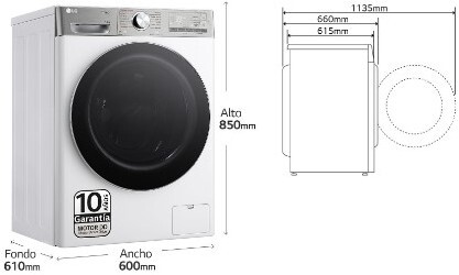 CARACTERISTICAS: Peso y dimensionesAncho: 600 mmProfundidad: 615 mmAltura: 850 mmPeso: 73 kgControl de energíaConsumo de energía por ciclo de lavado: 045 kWhClase eficiencia de energía: AErgonomíaAuto diagnóstico: SíBloqueo para niños: SíDiseñoTransmisión directa: SíTipo de visualizador: LEDTipo de control: BotonesgiratorioBisagra para puerta: DerechaColor de la puerta: NegraVentana de visión: SíCarga Frontal / Superior.: FrontalColor del producto: BlancoPantalla incorporada: SíDesempeñoTurboWash 360ºAutodosificaciónCapacidad de carga (kilos): 13 kgRevoluciones máximas de centrifugado: 1400 RPMWi-Fi controlado: SíProgramación diferida: SíTiempo del ciclo (máx.): 4 hNivel de ruido (centrifugado): 72 dBProgramas de lavadoPrograma de lavado de algodón: SíPrograma de lavado mix: SíPrograma de lavado de deporte: SíPrograma de lavado silencioso: SíPrograma de lavado delicado/seda: SíPrograma de lavado rápido: SíFunción vapor: SíPrograma Edredones/Ropa de cama: SíPrograma de lavado a mano/lana: SíConexiónWifi: Sí
