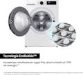 Ahorra energía de una forma inteligente\nSmartThings AI Energy Mode\nControla y reduce el consumo de energía de la lavadora. Energy Mode[1] te permite comprobar el consumo de energía y calcular tu factura de la luz. Este modo reduce el uso de energía hasta un 70%[2] , utilizando Ecobubble™ para lavar con agua fría en lugar de caliente y un tiempo de ciclo extra.\n\nReduce los microplásticos\nPrograma Less Microfiber\nAyuda a proteger el medioambiente evitando que la ropa pierda microfibras durante el lavado que acabarán en los océanos. Gracias a la optimización de las revoluciones del motor y la intensidad del lavado, el ciclo Less Microfiber reduce la cantidad de microfibras liberadas a los océanos un 54%[3] \n\nConecta tu vida con SmartThings\nWi-Fi integrado\nDisfruta de un lavado eficiente y sin complicaciones con la aplicación SmartThings[4]. AI Energy Mode te ayuda a gestionar el uso de energía, y el modo 'Home Care' mantiene la lavadora en las mejores condiciones. Además, si tienes una secadora en casa puedes emparejarla con tu lavadora.\n\nSmartThings Energy\nHaz un uso eficiente de la energía\nGestiona tu consumo de energía de manera óptima para ahorrar dinero.SmartThings Energy[5] te da consejos sobre eficiencia energética, te ayuda a controlar el consumo de energía de los electrodomésticos[6] en tiempo real y lo compara con el mes anterior. Además, te informa si has superado tus objetivos.\n\nSmartThings Home care\nMantenimiento sencillo\nCuida de tu lavadora con facilidad. SmartThings[7] te avisa cuando hay que sustituir piezas y te ayuda a solucionar problemas. También te muestra cómo actualizar el software de servicios y dispositivos; y proporciona consejos útiles sobre el uso de tus electrodomésticos.\n\nSamsung cuida de ti\nPrograma de vapor\nUna limpieza profunda. Elimina los alérgenos y bacterias a través de una fase de vapor al final del ciclo del lavado principal. Disponible en Programa Higiene (mínimo 60ºC) y Ropa de Cama (máximo 40ºC)**] . Este ciclo libera vapor desde la parte inferior del tambor eliminando la suciedad incrustada.\n\nLimpieza más profunda\nLavado de tambor+\nPrograma que elimina el 99%[8] de las bacterias causantes del mal olor sin necesidad de utilizar químicos agresivos, gracias a una potente inyección de agua junto con un centrifugado rápido.\n\nElimina los residuos\nCubeta StayClean\nNo desperdicies más detergente y olvídate de limpiar el cajón del detergente. El cajón StayClean garantiza que se elimine una mayor cantidad de detergente con un sistema de descarga de agua especialmente diseñado para ello. ¿El resultado? Menos residuos de jabón y una bandeja limpia.\n\nMotor Digital Inverter\n20 años de garantía\nEn lugar de funcionar a través de unas escobillas, este motor lo hace a través de unos imanes que reducen la fricción, lo que supone un ahorro en el consumo energético y una mayor eficiencia en el motor. Además