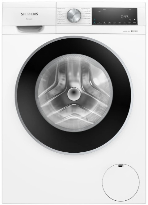 Siemens iQ500 WG42G200ES. Tipo de carga: Carga frontal. Capacidad nominal: 9 kg, Clase de secado por giro: B, Nivel de ruido (spin): 71 dB, Nivel de ruido (lavado): 51 dB, Máxima velocidad de centrifugado: 1151 RPM. Color del producto: Blanco. Ancho: 598 mm, Profundidad: 590 mm, Altura: 848 mm. Clase de eficiencia de energía: A