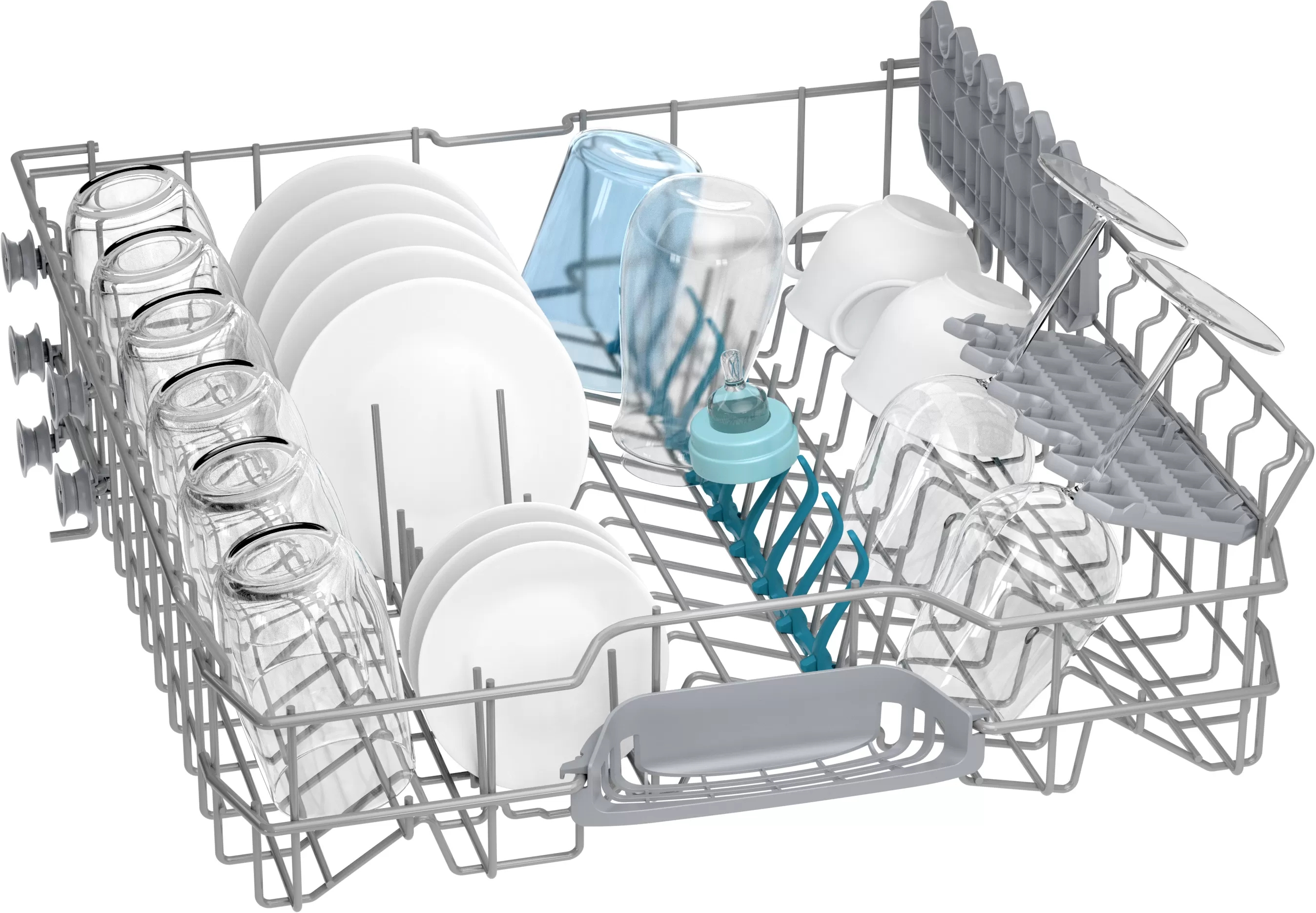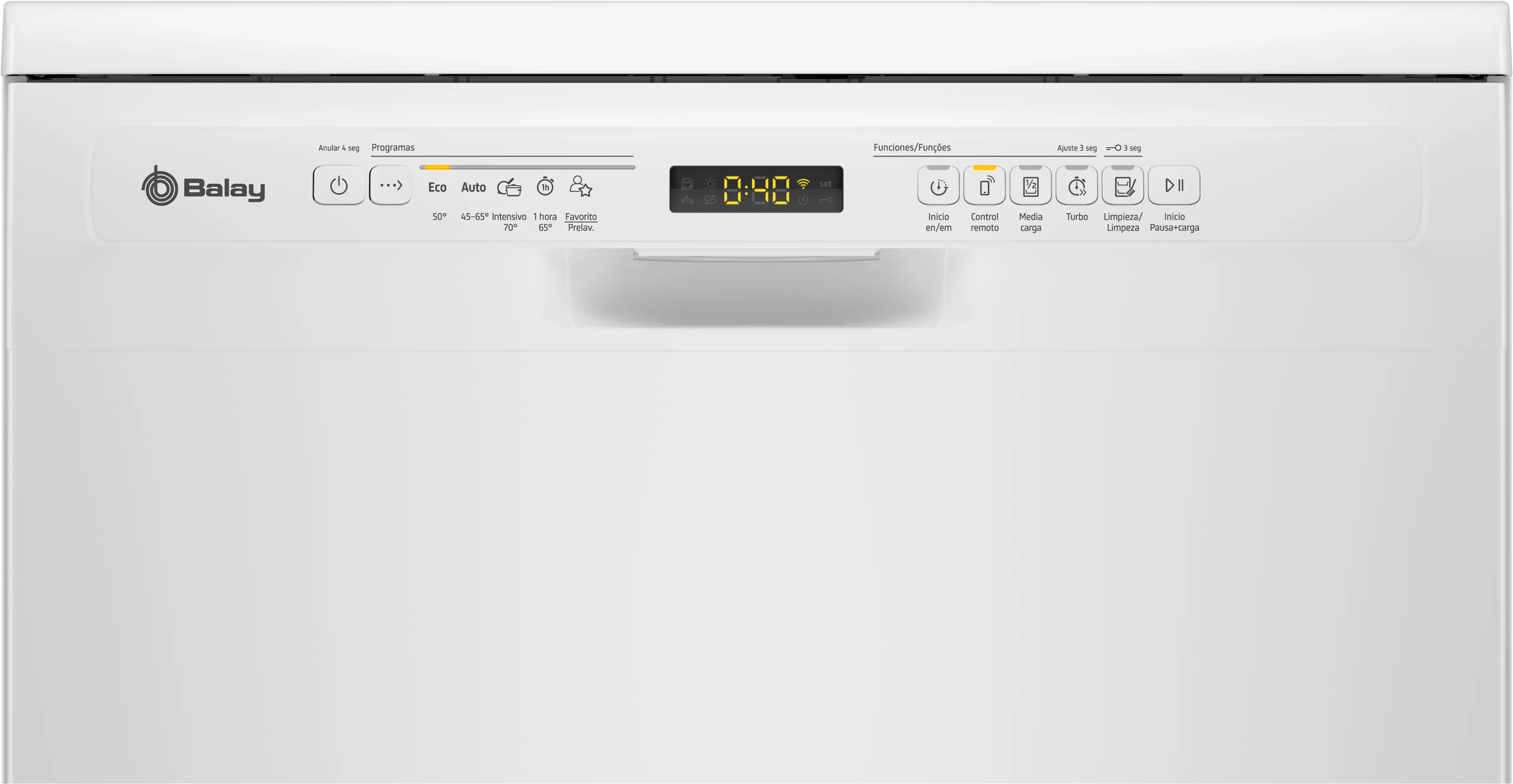Cestillo Dúo para cubiertos. ¡Esto sí que es un 2X1!\nEl diseño de este nuevo cestillo permite dividirlo en dos unidades independientes, para usarlas por separado. Además, gracias al nuevo anclaje que incorpora, puedes colgar una de las mitades en una barra de cocina. ¡Máxima comodidad para cada necesidad!\n\n""Auto Diario"": el programa que sabe lo que tu vajilla necesita.\nHay cosas rutinarias de las que no deberías preocuparte, como elegir el programa del lavavajillas. La función ""Auto Diario"" lo hace por ti, ajustando de forma automática el agua, la temperatura y el tiempo de lavado, según lo sucia que esté la vajilla. ¡Y la deja siempre impecable! En definitiva: hace lo mismo que tú harías, para que tú te despreocupes.\n\nMotor ExtraSilencio: la banda sonora de tus sobremesas no debería ser el lavavajillas.\nAsí lo pensamos en Balay y por eso incorporamos el motor ExtraSilencio con tecnología Inverter, que prescinde de las escobillas tradicionales y reduce el rozamiento. Esto no solo consigue minimizar el nivel de ruido, sino que además, alarga la vida útil del motor y aumenta su eficiencia. Algo que agradecen tanto tus oídos como tu bolsillo. ¿A que suena bien?\n\n10 años de garantía total de la cuba.\nCuando fabricamos un lavavajillas Balay no solo queremos ofrecerte buenos resultados de lavado. También queremos que lo disfrutes con tranquilidad, sabiendo que nunca vas a tener que hacer frente a una indeseable fuga de agua. Por eso no solo podemos asegurarte que la cuba ha sido fabricada con el máximo rigor, para descartar cualquier posibilidad de fuga; sino que te lo garantizamos ¡durante 10 años! Porque lo único que debe salir de tu lavavajillas son platos relucientes.\n\nControla tu lavavajillas desde el móvil con la app Home Connect. ¡Todo el poder en tu mano!\nTodos los lavavajillas de la nueva gama son conectables a cualquier dispositivo móvil, para que puedas controlarlos cómodamente desde la app Home Connect.. ¡Una comodidad extra allá donde estés!\n\nDisplay digital: el tiempo bajo control\nUna buena planificación hace que tu vida diaria sea más cómoda. Y saber cuánto falta para que termine el programa de lavado, te ayudará a planificar tu tiempo sin tener que estar pendiente del lavavajillas. Porque seguro que tienes que hacer cosas más importantes que esperar.\n\n“Media carga”: lavar con menos platos no es ningún derroche.\n¿Cuántas veces has tenido que esperar a llenar el lavavajillas para ponerlo en macha? Esto se ha acabado gracias a la función “Media carga”, que permite aprovechar al máximo el agua, la energía, el detergente y el tiempo, para lavar menos cantidad de vajilla con los mejores resultados. Basta con pulsar una tecla para reducir el consumo hasta en un 20%. Además, podrás distribuir la carga en ambas cestas, colocando cada pieza donde más te convenga.\n\nPrograma “ECO”: cuida los recursos, con el mejor resultado.\nCuando tengas que fregar la vajilla y los c