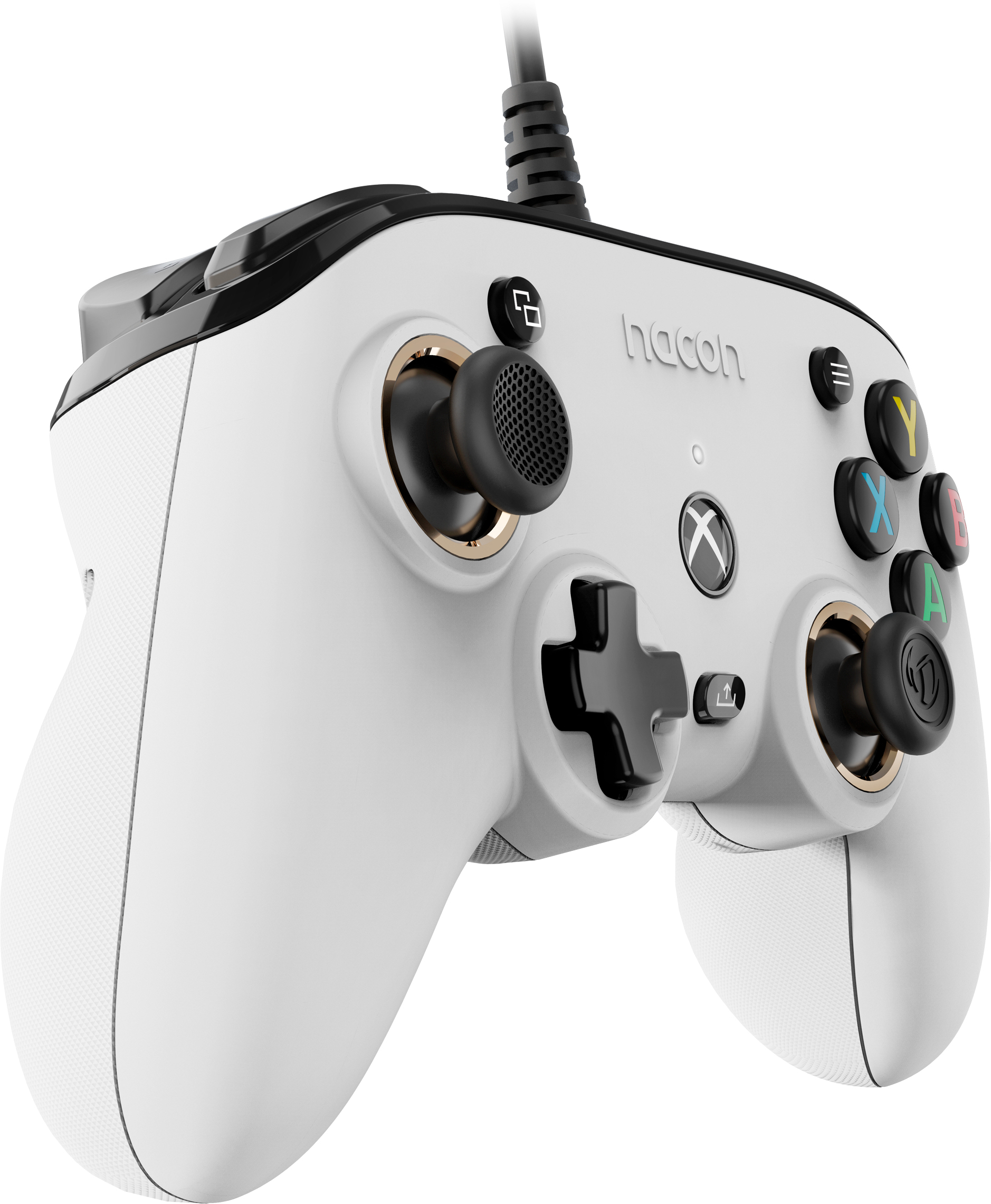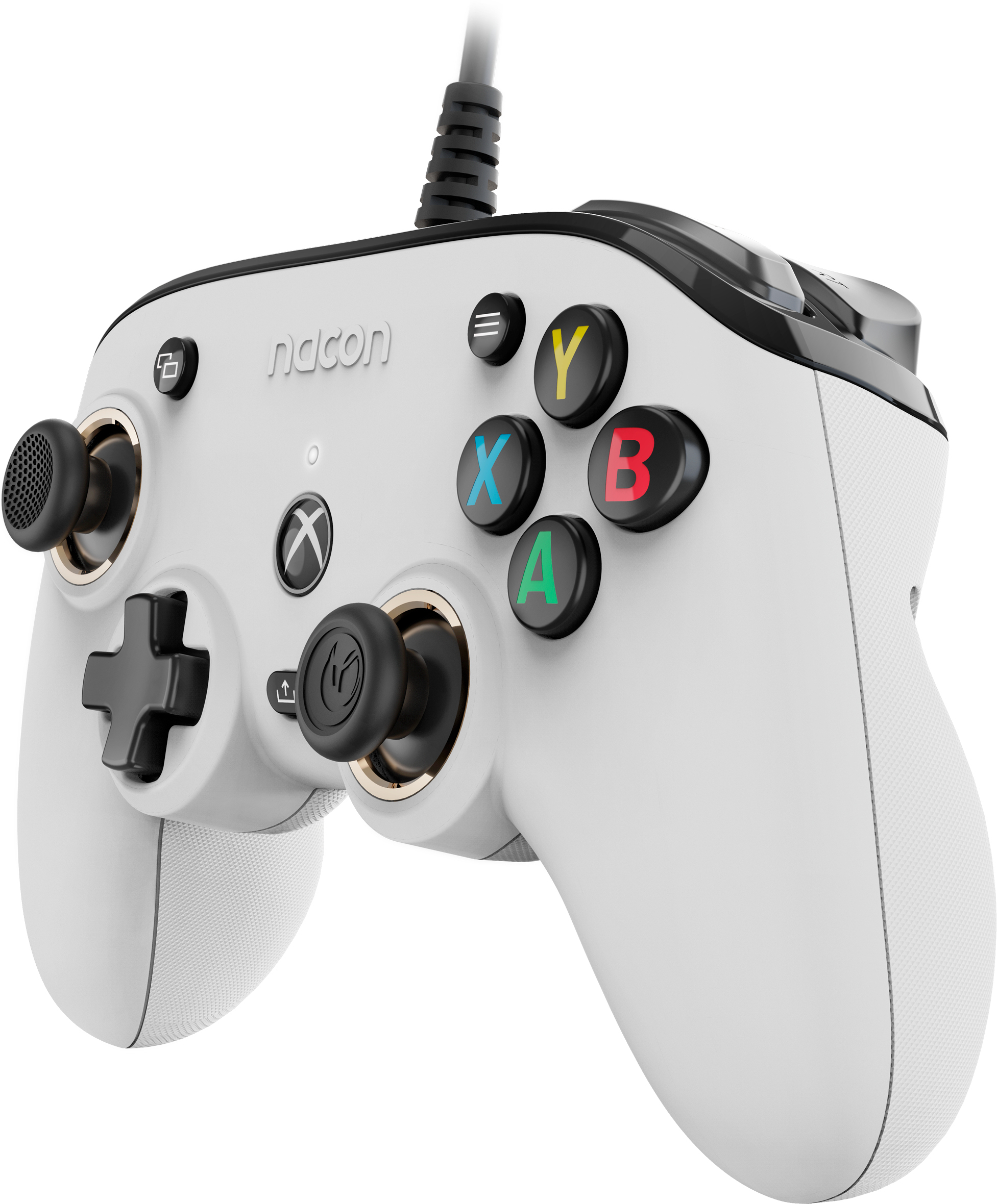 NACON Pro Compact Controller. Tipo de dispositivo: Gamepad, Plataformas de juego soportadas: Xbox One,Xbox Series S,Xbox Series X. Tecnología de conectividad: Alámbrico, Interfaz del dispositivo: USB. Color del producto: Blanco, Longitud de cable: 3 m. Fuente de energía: Cable. Cables incluidos: USB