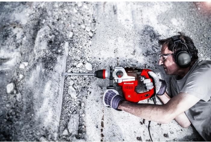EINHELL Taladro percutor TE-RH 38 E - Robusto mandril SDS-Max - 3 funciones: taladrar con percusión, cincelar con o sin accesorio de cincel - Alimentación 220-240 V | 50 Hz - Potencia 1050 W - Velocidad en vacío 0-500 rpm. - Frecuencia de golpe 0-4100 cps/min. - Fuerza de impacto 9 J - Capacidad de perforación en hormigón 38 mm.