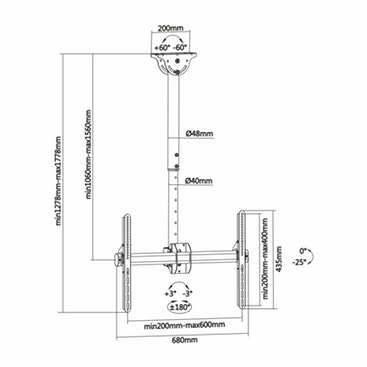 AISENS® – Soporte de techo giratorio, inclinable, extensible y nivelable para monitor/TV de 37”-70”. Fabricado con acero de alta resistencia y pintado con pintura electrostática para un acabado perfecto.