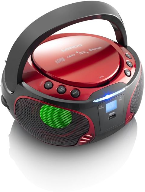 Lenco SCD-550. Tipo de sintonizador: Digital, Bandas de radio soportadas: FM. Tipo de unidad óptica: Jugador, Tipos de discos soportados: CD, Modo de reproducción: Next, Pausa, Play, Anterior. Potencia estimada RMS: 3,6 W. Tipo de visualizador: LCD, Color de luz de fondo: Azul. Color del producto: Rojo, Tipo de control: Botones, Control de volumen: Giratorio