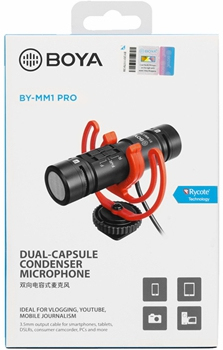 BOYA BY-MM1 Pro. Tipo: Micrófono para cámara digital, Frecuencia de micrófono: 45 - 18000 Hz, Micrófono, relación señal/ruido: 80 dB. Tecnología de conectividad: Alámbrico, Interfaz del dispositivo: 3.5 mm (1/8 ""). Color del producto: Negro. Diámetro: 2,2 cm, Peso del micrófono: 67,5 g. Número de productos incluidos: 1 pieza(s)