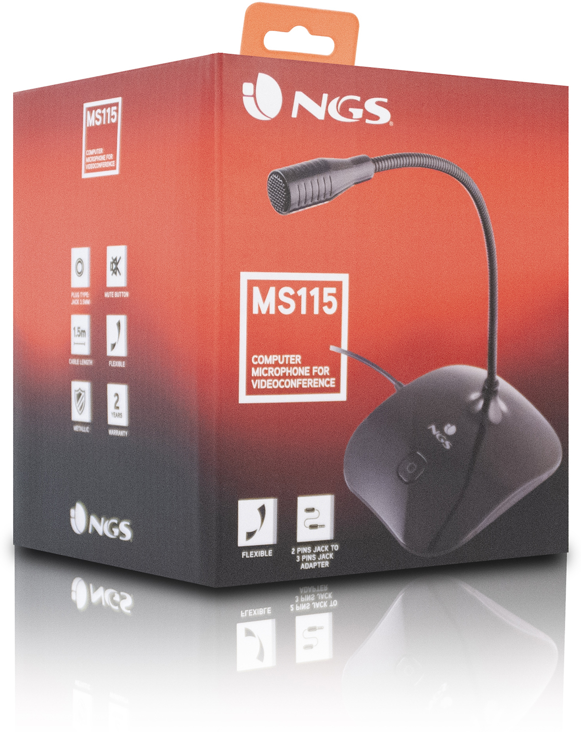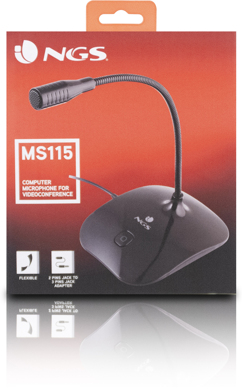 Elegante micrófono de sobremesa para juegos y videoconferencias.\n\nEste práctico micrófono omnidireccional está formado por un cuello de cisne flexible metálico y una peana con protección antideslizante para una mayor estabilidad.\n\nPodrás ajustarlo tanto en altura como la posición para lograr un mejor sonido.\n\nGracias a su ángulo ajustable es ideal para chatear, jugar, video conferencias... en definitiva, un dispositivo con multitud de opciones que será indispensable en tu escritorio.\n\nDispone de una conexión jack 3.5 mm que lo hace ideal para el uso en portátil y además incluye un adaptador de jack hembra a doble jack macho para su uso en PC. Su cable de 1.5 m te facilitará tus movimientos.\n\nNgs MS-115 filtra el ruido de fondo no deseado y ofrece una claridad de sonido excepcional.\n\nDispone de un sencillo botón MUTE (para apagar y encender el micrófono) que lo hace muy práctico, sobre todo cuando tienes que silenciarte unos segundos si por ejemplo estas en una videoconferencia y te llaman al móvil.