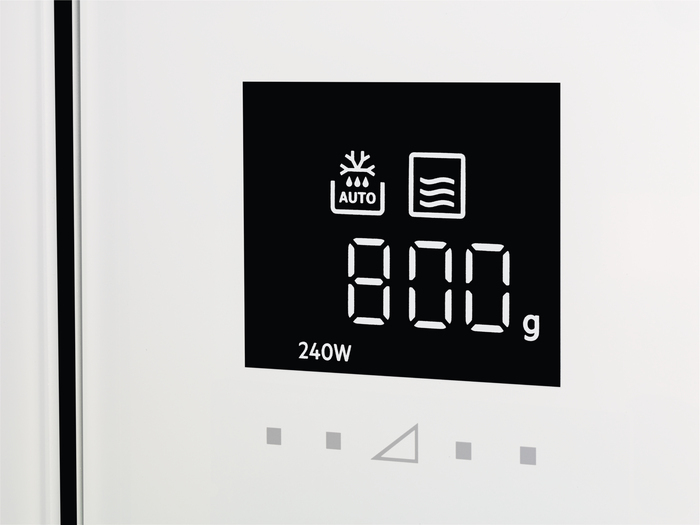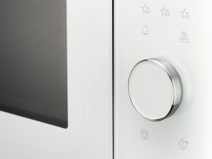 Microondas de 17L, Display LED gráfico táctil rotativo y Apertura electrónica, Programas de cocción, Instalación y ventilación Mastery, Marco Integrado, Potencia: Microondas de 800W, Blanco\n\nLA GAMA MÁS AMPLIA DE OPCIONES DE COCCIÓN\nEste microondas es el complemento perfecto de tu horno tradicional. Amplía el número de opciones de cocción y ofrece un espacio de horno adicional.\n\nAPERTURA ELECTRÓNICA, CON SOLO TOCAR UN BOTÓN\nMicroondas diseñado con una puerta de apertura electrónica activada por contacto. Se abre con solo tocar el botón de apertura, proporcionando un acceso rápido y práctico al interior de la cavidad del horno.\n\n3 FUNCIONES FAVORITAS, ACCESO INSTANTÁNEO A PROGRAMAS PERSONALIZADOS\nLos ajustes de microondas más frecuentes se pueden guardar para acceder rápidamente a ellos con en el mneú de favoritos. Una vez que configurado un programa personalizado, basta con activarlo mediante el icono en forma de estrella. No es necesario recordar los ajustes programados cada vez.\n\nDISEÑO ELEGANTE Y LIMPIEZA RÁPIDA\nSu diseño elegante evita que haya lugar alguno donde la suciedad pueda acumularse. Sin botones o pulsadores, solo hay una superficie de lisa de cristal que asegura un acabado impecable en todo momento.