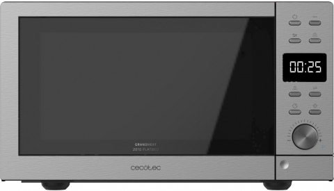 AttrID-InfoAdicional:Microondas sin plato digital de 20 litros de capacidad con grill y 700 W de potencia. Tipo de Microondas:Con grill Potencia Microondas:700 Dimensiones del producto (AltoxAnchoXFondo):49.7 x 31.5 x 40.Microondas sin plato digital de 20 litros de capacidad con grill, 700 W de potencia y 9 funciones preconfiguradas.,Microondas sin plato digital de 20 L de capacidad.,700 W de potencia en 6 niveles pudiendo combinar microondas y grill.,Grill de 900 W de potencia para lograr unos resultados perfectos de gratinado de una manera,rápida y sencilla.Especificaciones: .Color: Acero | Con Grill . | Marca: Cecotec . | Material: Cerámica . | Capacidad: 20 Litros . | Frecuencia: 50 Hz . | Nombre del modelo: GrandHeat 2010 Flatbed Steel . | Peso del producto: 13.04 Kilogramos . | Tipo de instalación: Independiente . | Entrada de interfaz humana: Botones . | Dimensiones del producto: 49.7 x 40 x 31.5 centímetros. | Tipo de Control: Mecánico / Electrónico . | Tipo de Apertura: Automática Pulsador