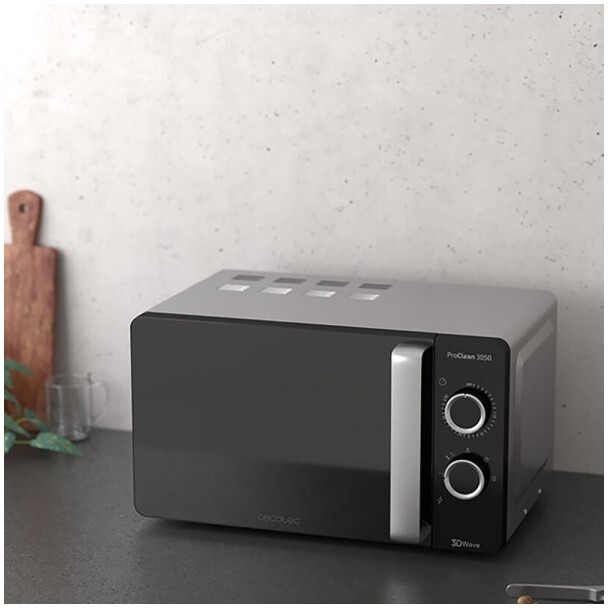 Cecotec ProClean 3050 - Microondas plateado, Revestimiento Ready2Clean, Tecnología 3DWave, 20 L, 6 niveles