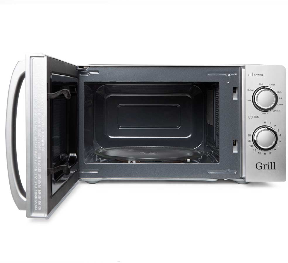 El nuevo microondas MIG 2138 de Orbegozo ofrece todo lo necesario para disfrutar de la cocina de forma rápida y eficaz. Este modelo con acabado en color silver y botones cromados le otorgan una notable distinción frente a modelos con colores más habituales. Tiene una capacidad de 20 litros y, resulta muy cómodo para cualquier tipo de cocina.\n\nPosee cinco niveles de potencia microondas con 700 W, además de 3 funciones combinadas grill microondas. Su temporizador es regulable hasta 30 minutos, y tiene señal de fin de cocción. Por otra parte, incorpora un programa de descongelación para tratar aquellos alimentos congelados de forma que mantengan su sabor y textura originales.\n\nDESCRIPCIÓN\nEl nuevo microondas MIG 2138 de Orbegozo ofrece todo lo necesario para disfrutar de la cocina de forma rápida y eficaz. Este modelo con acabado en color silver y botones cromados le otorgan una notable distinción frente a modelos con colores más habituales. Tiene una capacidad de 20 litros y, resulta muy cómodo para cualquier tipo de cocina.\n\nPosee cinco niveles de potencia microondas con 700 W, además de 3 funciones combinadas grill microondas. Su temporizador es regulable hasta 30 minutos, y tiene señal de fin de cocción. Por otra parte, incorpora un programa de descongelación para tratar aquellos alimentos congelados de forma que mantengan su sabor y textura originales.\n\nLas funciones combi unen las potencias del microondas con el grill, con el fin de conseguir un uso adecuado para ciertos alimentos y recetas. Así como para mantener las frescura de determinados alimentos.\n\nLa función “Combi 1” utiliza un nivel de potencia de microondas del 30% frente al 70% de la potencia grill y, es adecuada para alimentos tales como pescados, patatas o gratinados.\nLa función “Combi 2” utiliza un nivel de potencia de microondas del 49% frente al 51% de la potencia grill y, es adecuada para alimentos tales como tortillas, purés y alimentos rellenos.\nLa función “Combi 3” utiliza un nivel de potencia de microondas del 67% frente al 33% de la potencia grill y, es adecuada para alimentos procedentes de aves.\n\nDESCRIPCIÓN\nEl nuevo microondas MIG 2138 de Orbegozo ofrece todo lo necesario para disfrutar de la cocina de forma rápida y eficaz. Este modelo con acabado en color silver y botones cromados le otorgan una notable distinción frente a modelos con colores más habituales. Tiene una capacidad de 20 litros y, resulta muy cómodo para cualquier tipo de cocina.\n\nPosee cinco niveles de potencia microondas con 700 W, además de 3 funciones combinadas grill microondas. Su temporizador es regulable hasta 30 minutos, y tiene señal de fin de cocción. Por otra parte, incorpora un programa de descongelación para tratar aquellos alimentos congelados de forma que mantengan su sabor y textura originales.\n\nLas funciones combi unen las potencias del microondas con el grill, con el fin de conseguir un uso adecuado para ciertos alimentos y recetas. Así como para mantener las frescu
