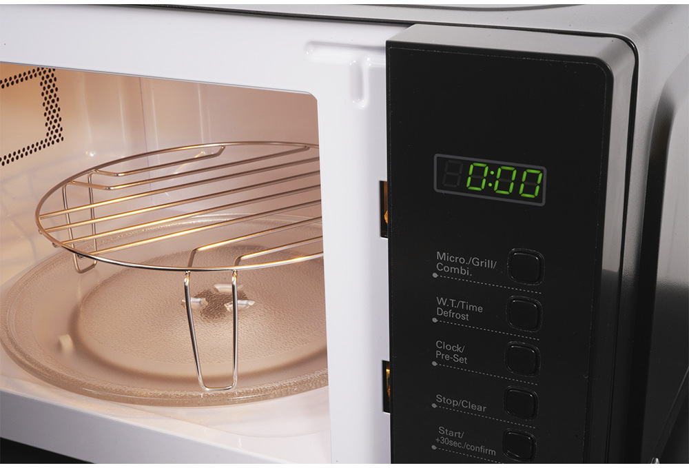 Capacidad de 20 litros.Potencia de salida de Microondas: 700W..Controles digitales con reloj y temporizador de 95 min.Función Combi-Grill.Funciones de 8 Menú automático, cocina rápida y mandos preestablecidos.Función descongelación por tiempo y Peso.Avisador fin de cocción.Plato giratorio de vidrio de 255 mm.Sistema de bloqueo infantil.Rejilla de metal.Voltaje / Frecuencia: 220 - 240V~ 50/60Hz.Potencia de entrada: 1050W Microondas / 1000W Grill